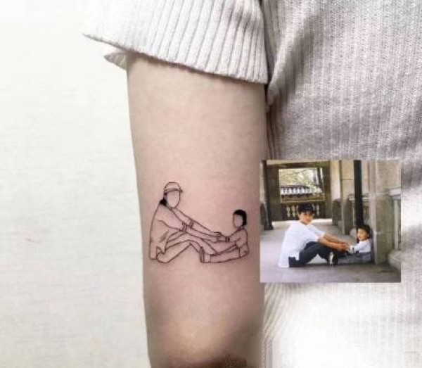 照片简笔画纹身 把照片做成简笔画纹在身上的作品