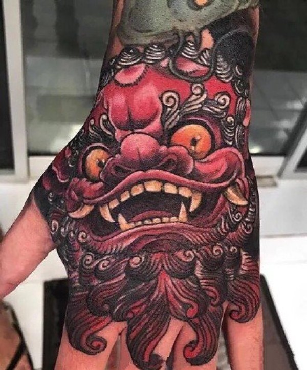 一款彩色的唐狮纹身图案