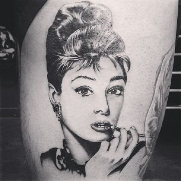 玛丽莲梦露和奥黛丽赫本的一组女神肖像纹身图案
