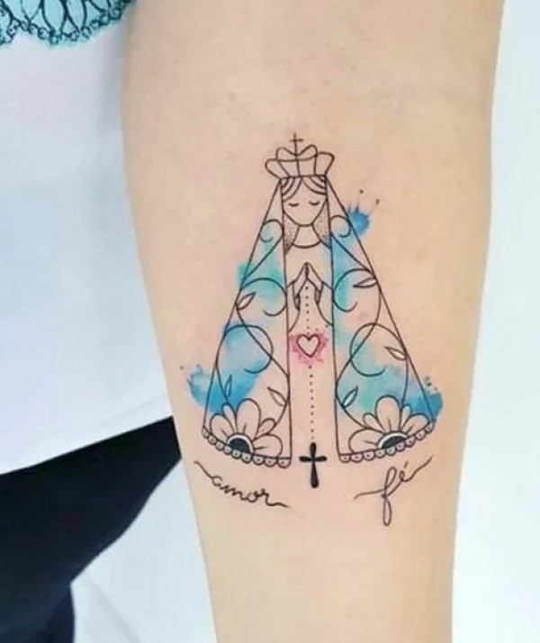 手臂彩色圣母玛利亚纹身图案