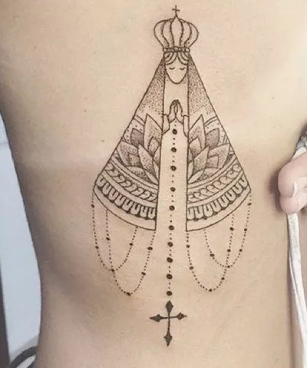 侧腰圣母玛利亚纹身图片