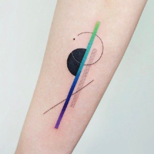 工整的线条,饱和度高的几何彩色纹身