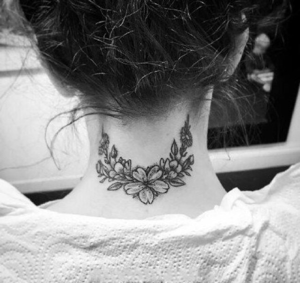 女生脖子纹身 女孩子颈部的一组小清新纹身图片