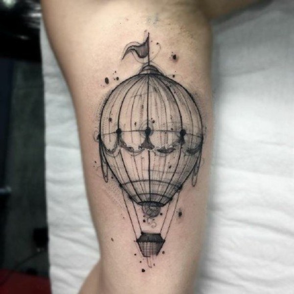 热气球纹身图案身 女生大腿上彩色的热气球纹身图片