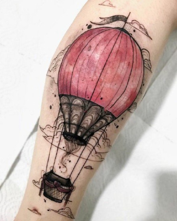 热气球纹身 男生手臂上花朵和热气球纹身图片