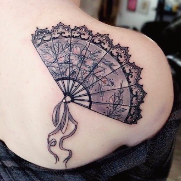 扇子纹身图案 10张彩绘纹身日本艺妓扇子纹身图案