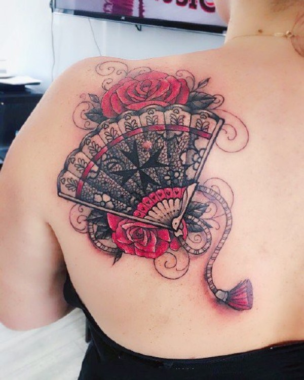 扇子纹身图案 10张彩绘纹身日本艺妓扇子纹身图案