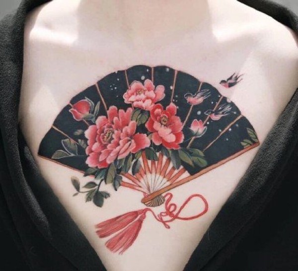 扇子纹身图案 10张彩绘纹身日本艺妓扇子纹身图案