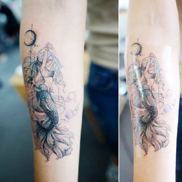 美人鱼纹身图案-彩绘水彩素描创意文艺唯美美人鱼纹身图案