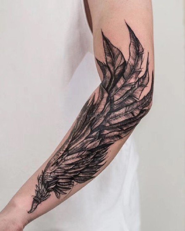 小臂翅膀纹身 小臂位置的9组黑灰翅膀纹身图片