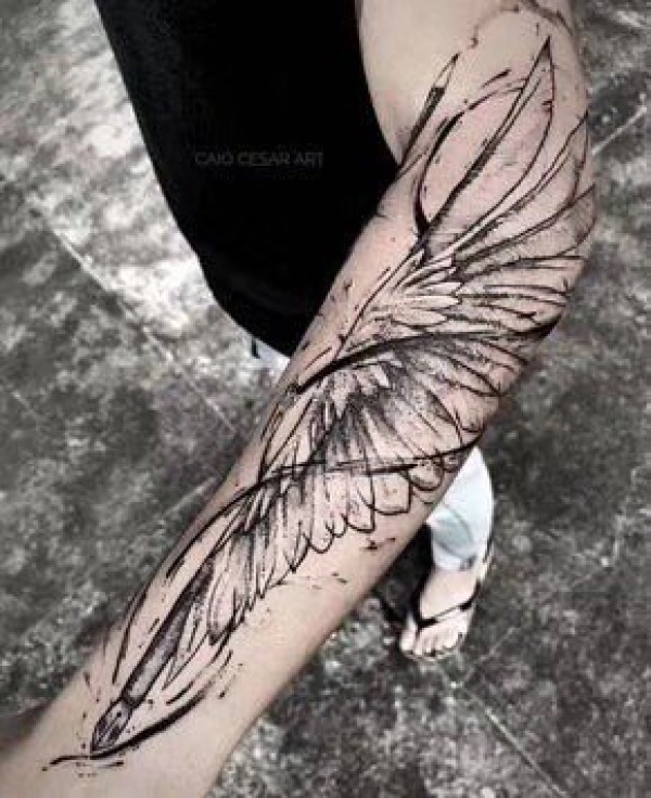 小臂翅膀纹身 小臂位置的9组黑灰翅膀纹身图片