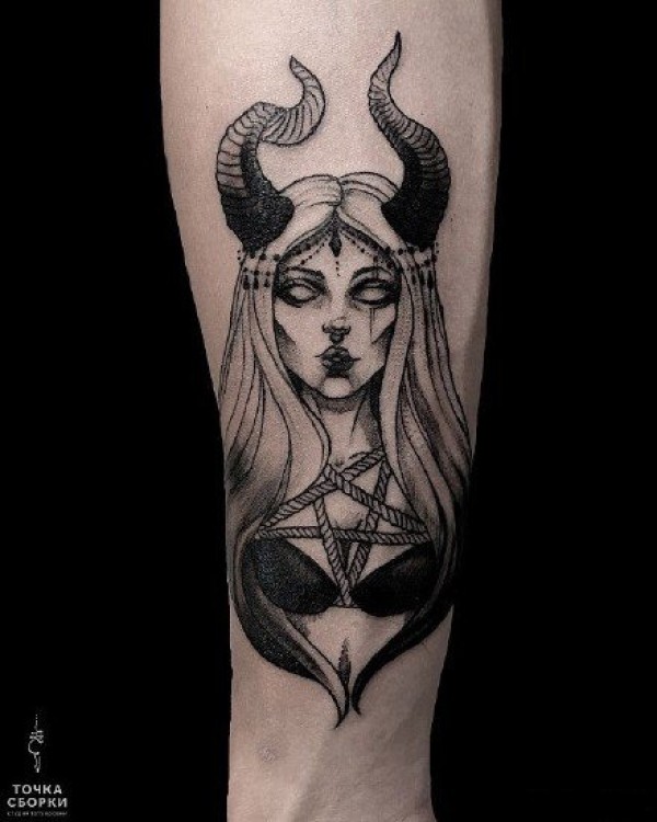 black work的一组18张暗黑色女郎纹身图片