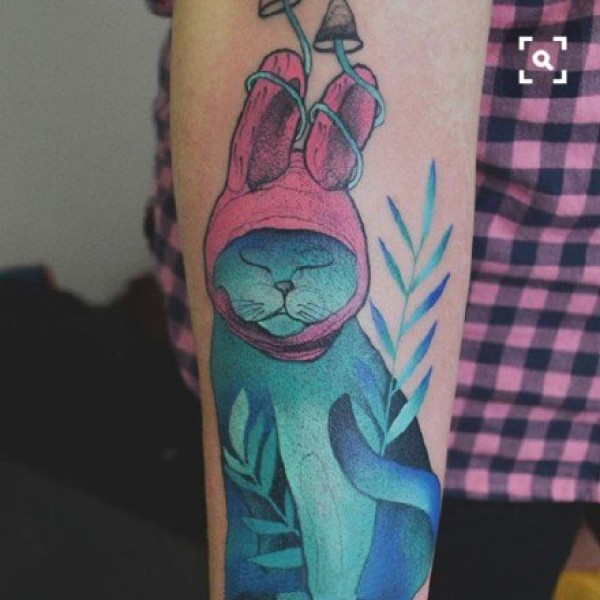 蓝绿色创意的一组猫主题纹身图片