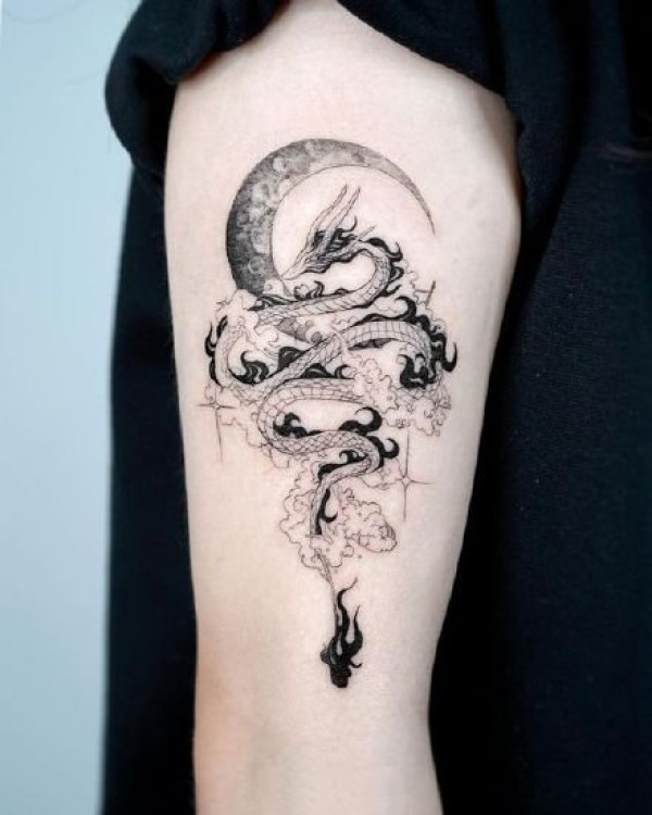 龙纹身手稿_一组老传统黑灰龙手稿纹身图案
