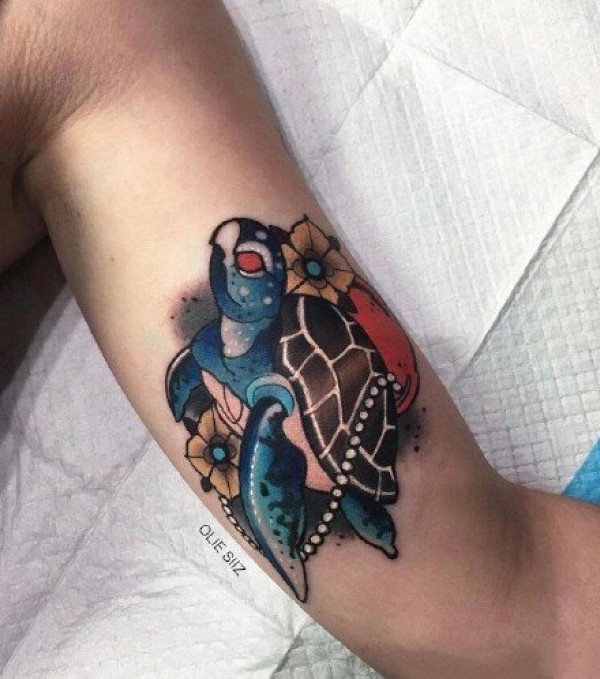 小海龟纹身 很小清新的彩色小海龟纹身图片