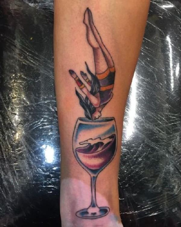 时尚个性啤酒女郎纹身手稿图案欣赏图片