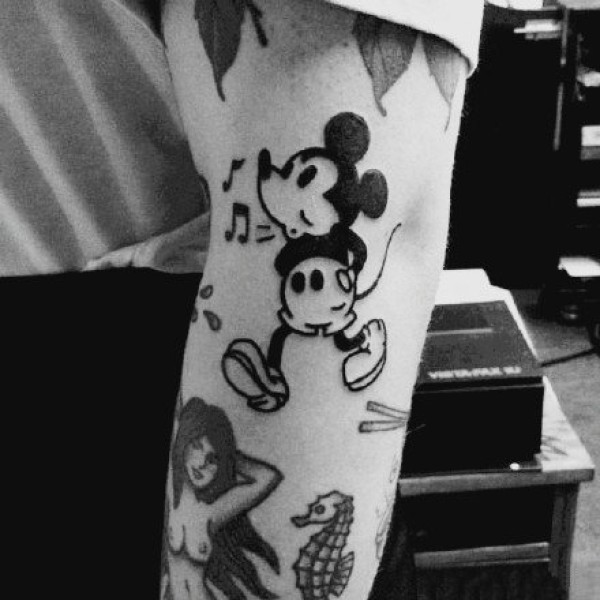 米老鼠头纹身 男生大臂上创意的米老鼠头纹身图片