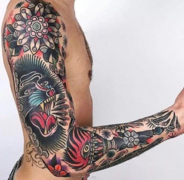 拼接纹身 一组oldschool的拼接花臂纹身作品图案