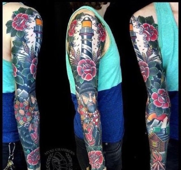 拼接纹身 一组oldschool的拼接花臂纹身作品图案
