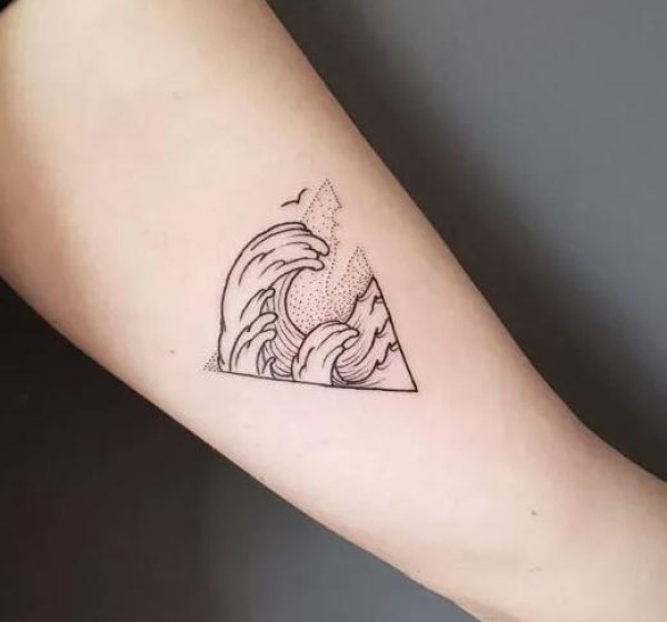 几何点刺小清新个性对称的海浪纹身图案手稿