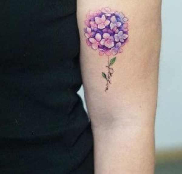 纹在手臂胳膊上的黑灰素花花卉纹身图案欣赏