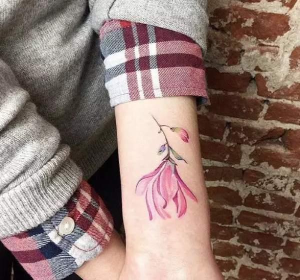 纹在手臂胳膊上的黑灰素花花卉纹身图案欣赏