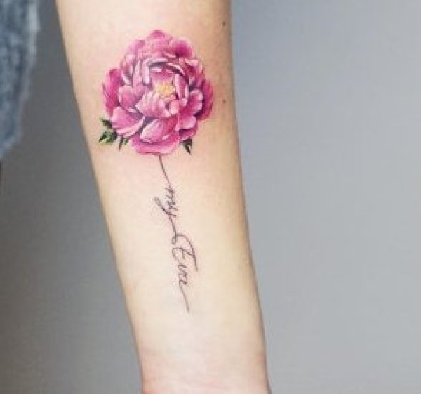 纹在手臂胳膊上的黑灰素花花卉纹身图案欣赏
