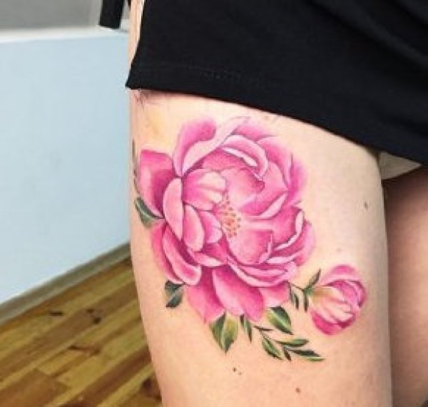 性感花朵纹身--女性大腿侧部性感的花朵纹身