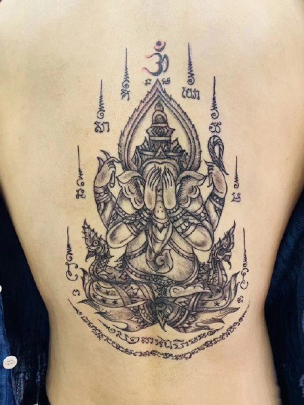 泰国法力纹身 明星后背上黑色的泰国法力纹身图片