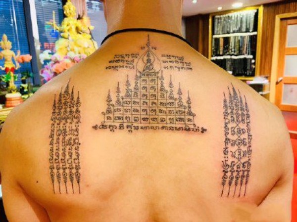 泰国法力纹身 明星后背上英文和泰国法力纹身图片