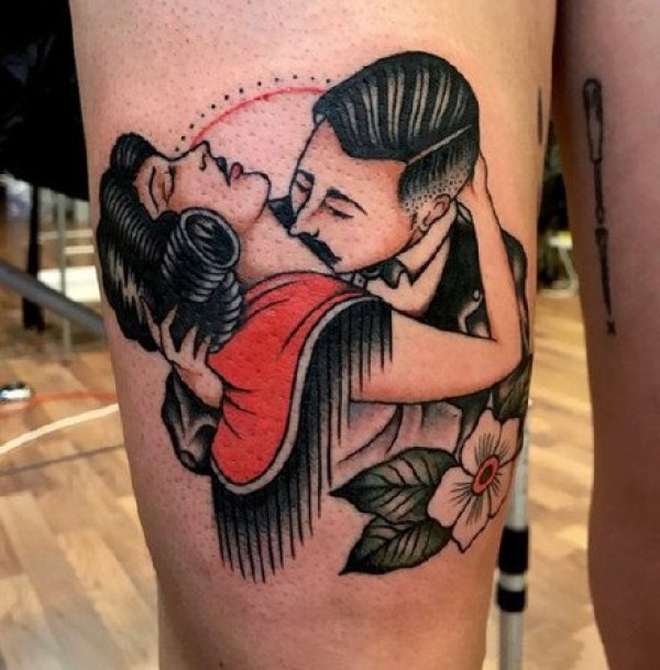 School couples一男一女的纹身图片
