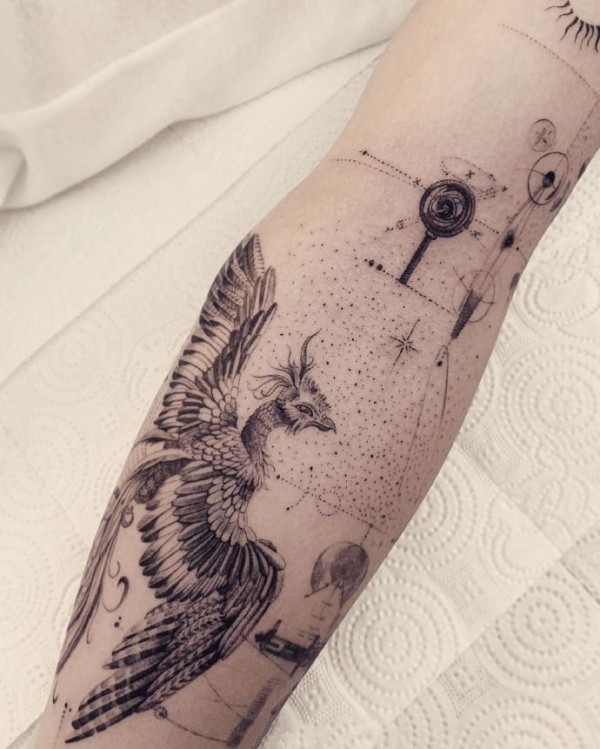 纹身凤凰 多款简单线条纹身黑色凤凰纹身图案