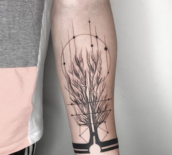 小臂手腕处很有民族风情的手环臂环纹身图案