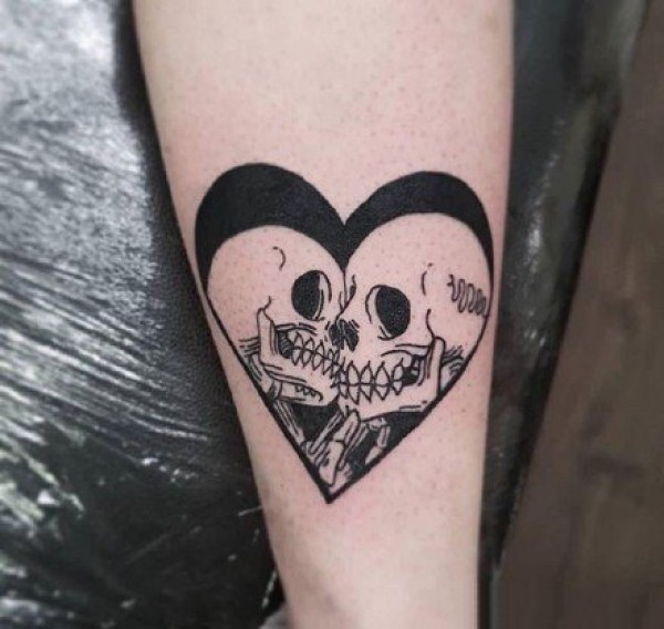心形纹身情侣 情侣手腕上黑色的心形纹身图片