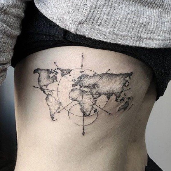 大臂纹身图 女生大臂上地图和指南针纹身图片