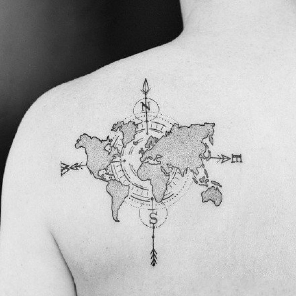 很好看的一组地图纹身图案分享