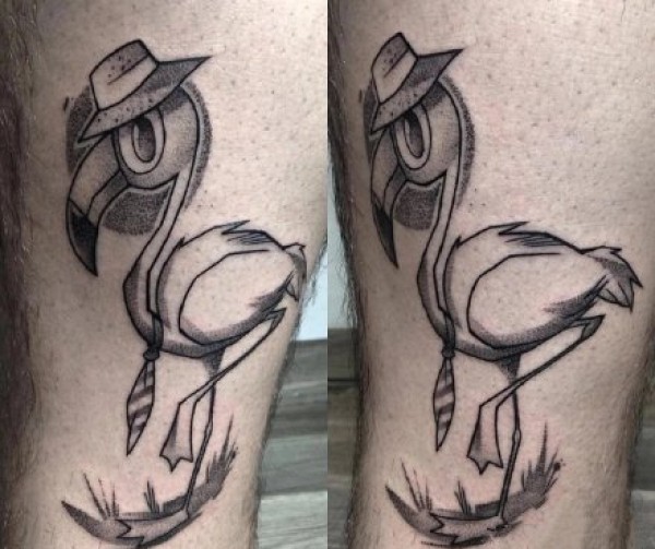 百乐动物纹身 男生小腿上菱形和火烈鸟纹身图片