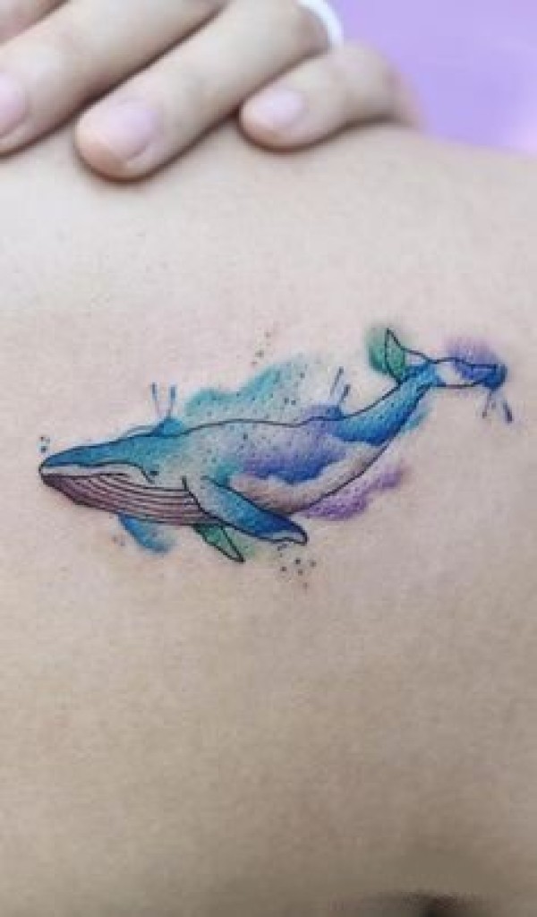 9张漂亮的水彩色鲸鱼纹身图案作品