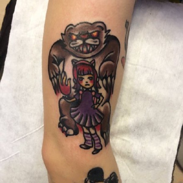 包小臂的游戏卡通角色纹身作品