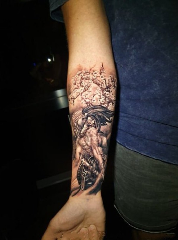 包小臂的游戏卡通角色纹身作品