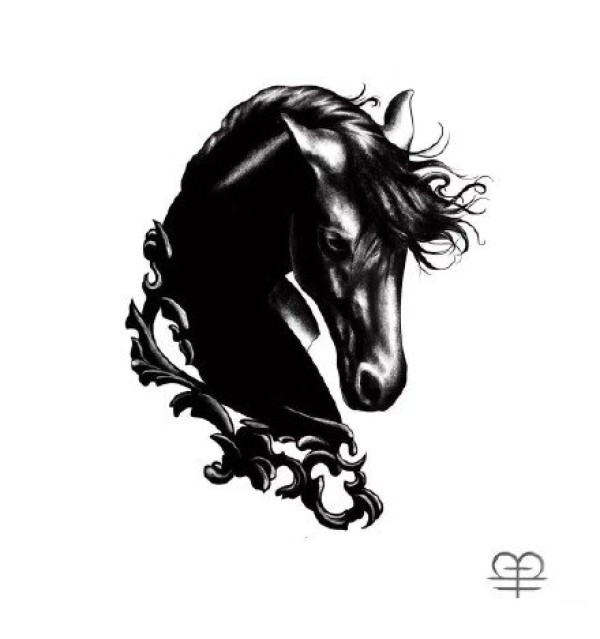 马纹身图案 10款黑灰或彩绘的纹身动物马图案