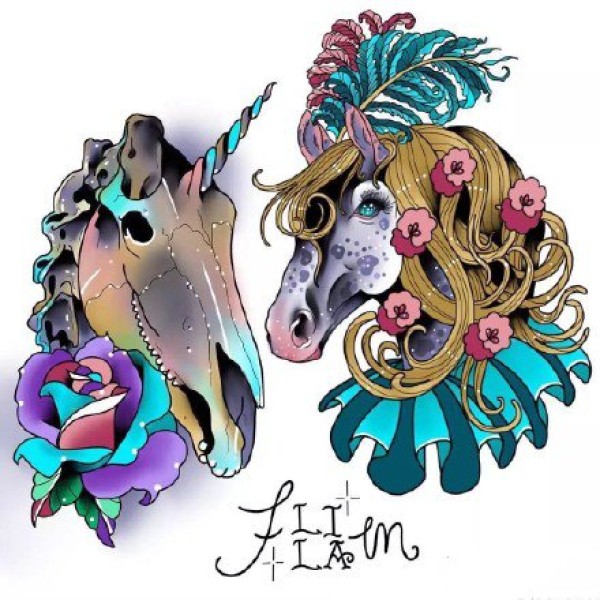 彩色梦幻的彩虹马纹身图案来自卡莉克罗尔