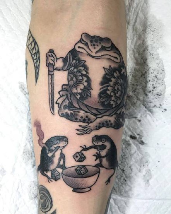 日式风格的传统花腿纹身作品欣赏