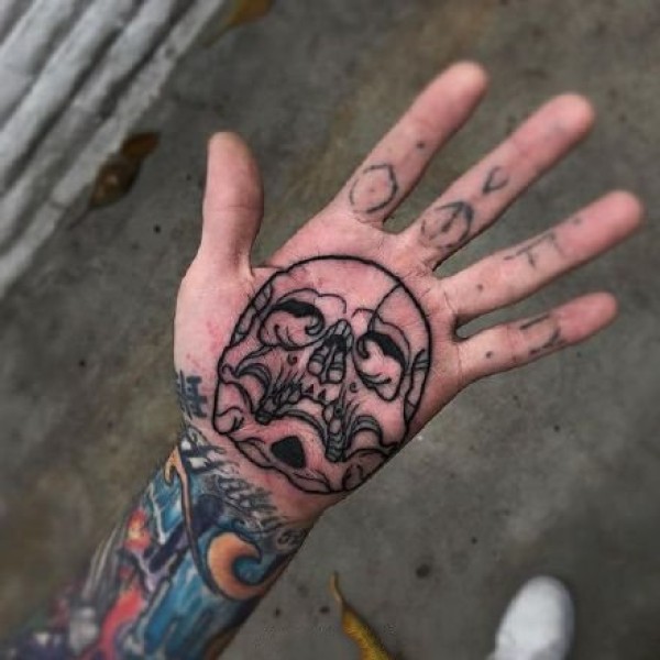 难以置信的黑灰海平面与南针和棕榈树纹身图案