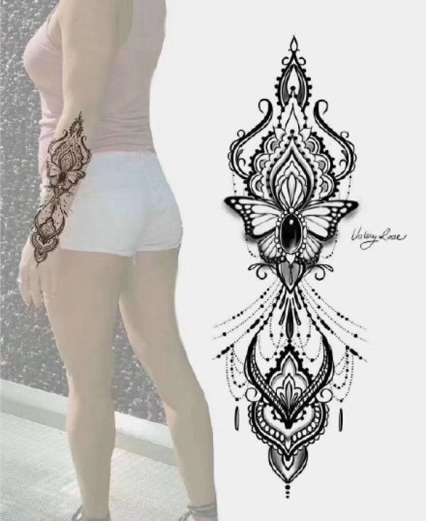 适合女生纹在后背脊柱处的唯美梵花纹身图案