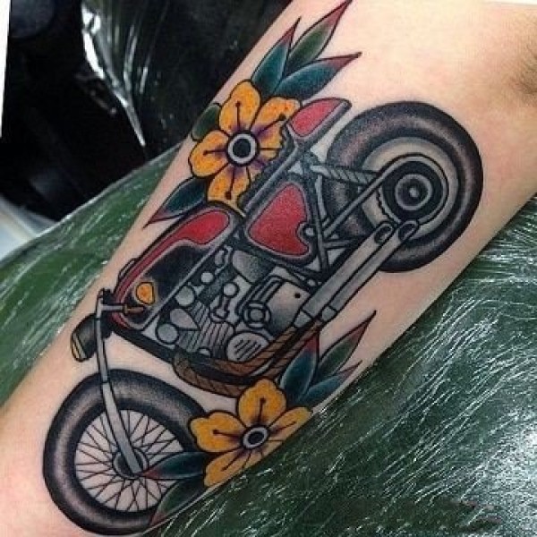 摩托车爱好者们身上帅气的摩托车纹身图案