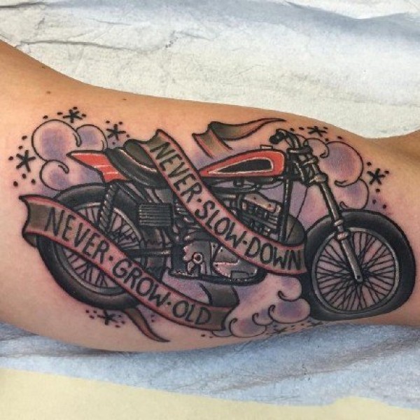 摩托车爱好者们身上帅气的摩托车纹身图案