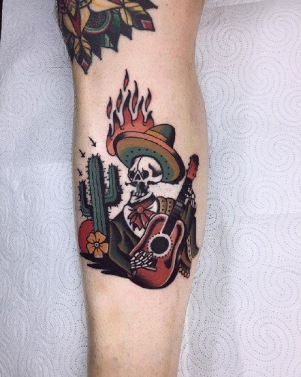 oldschool风格的拼接花臂纹身作品欣赏