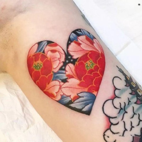 爱心小纹身--一组花花草草组成的心形小清新纹身图案