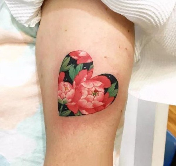 桃心和花朵搭配的一组纹身图片赏析